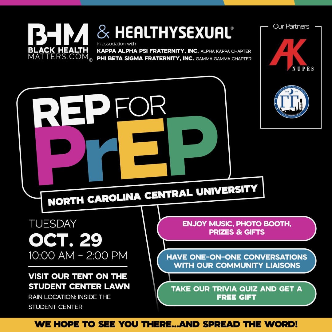 Join Black Health Matters on campus at North Carolina Central University to REP for PrEP.